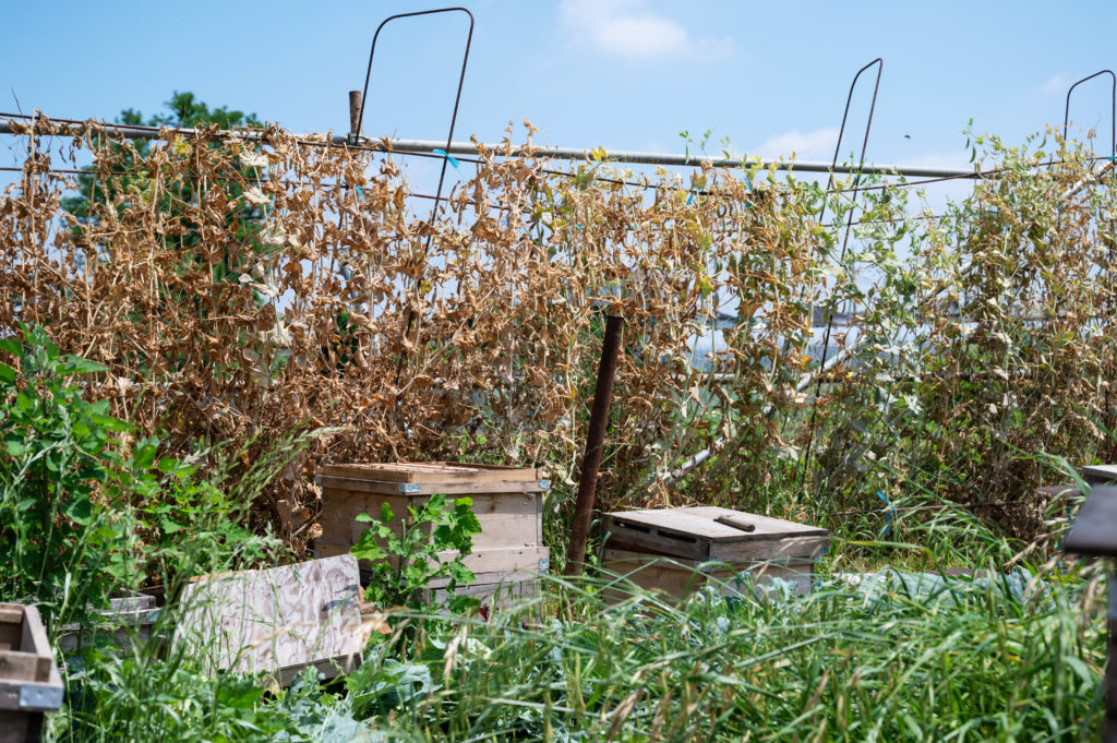 8つの巣箱のそれぞれに、蜜蜂がハチミツをためる巣枠が10枚ずつ入っている。
