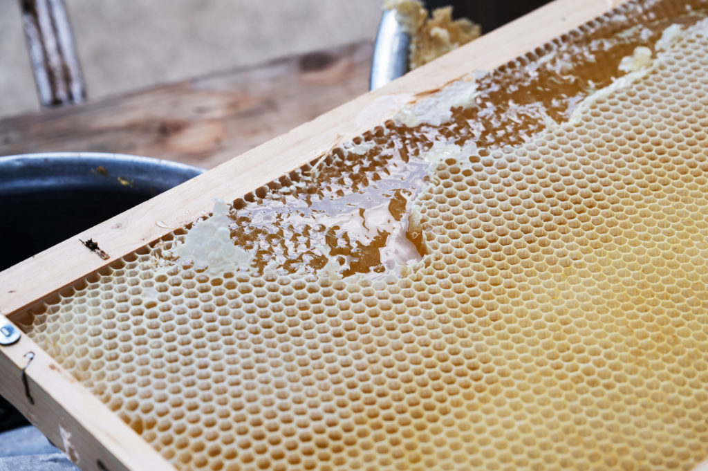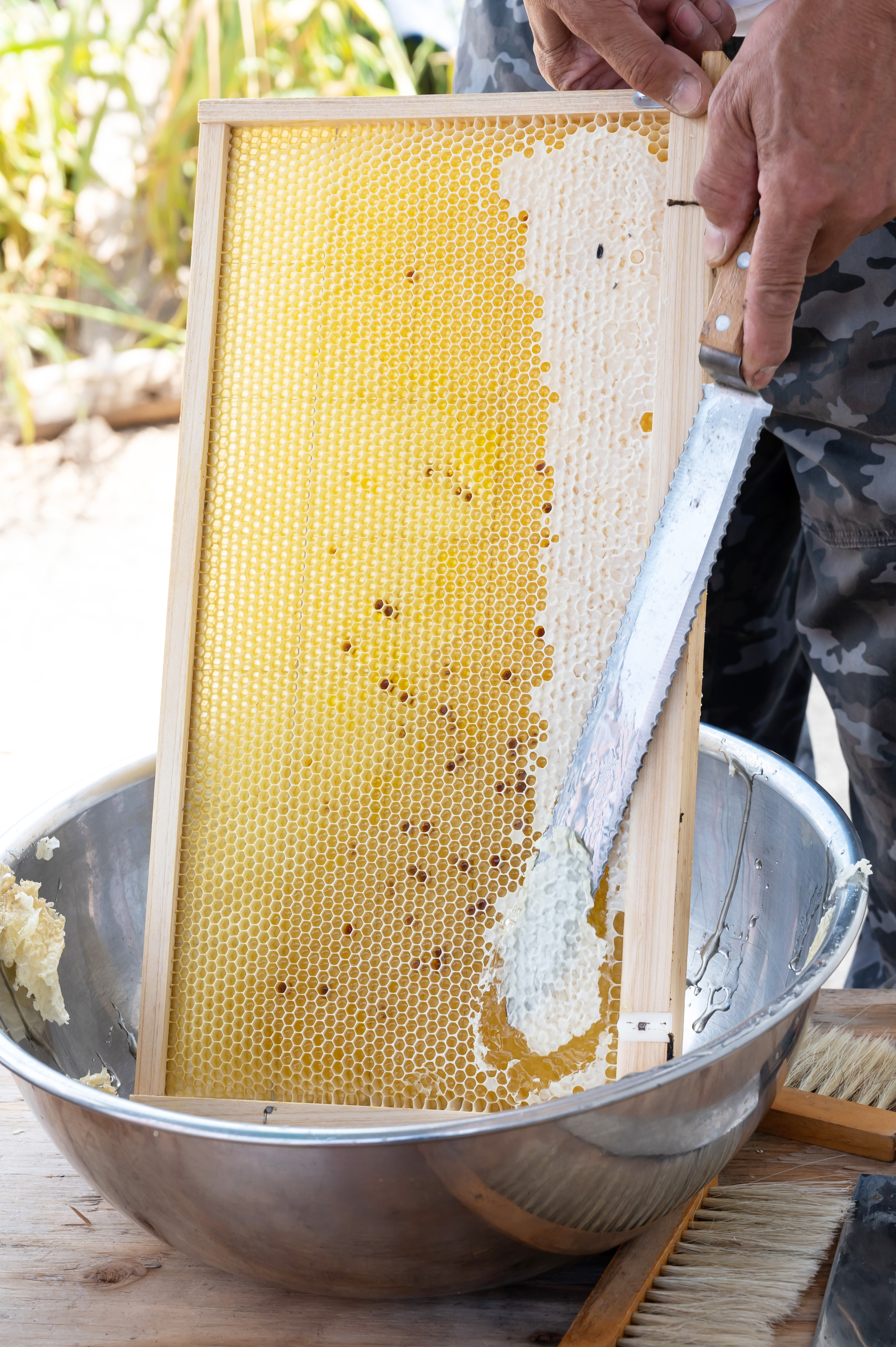 伺うと、丁度ハチミツを搾る下準備をしていた。