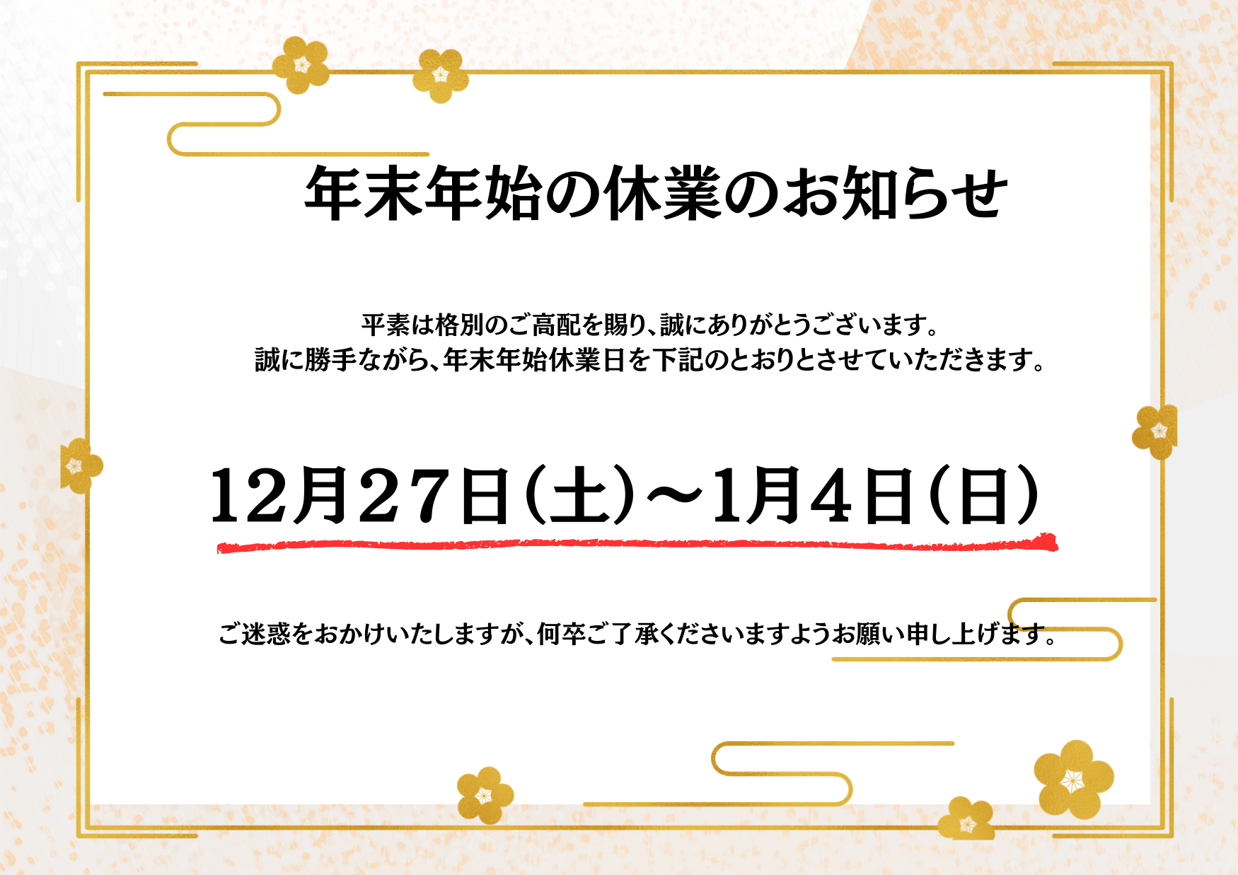 《お休み》令和7年12月27日(土)~令和8年1月4日(日)まで
